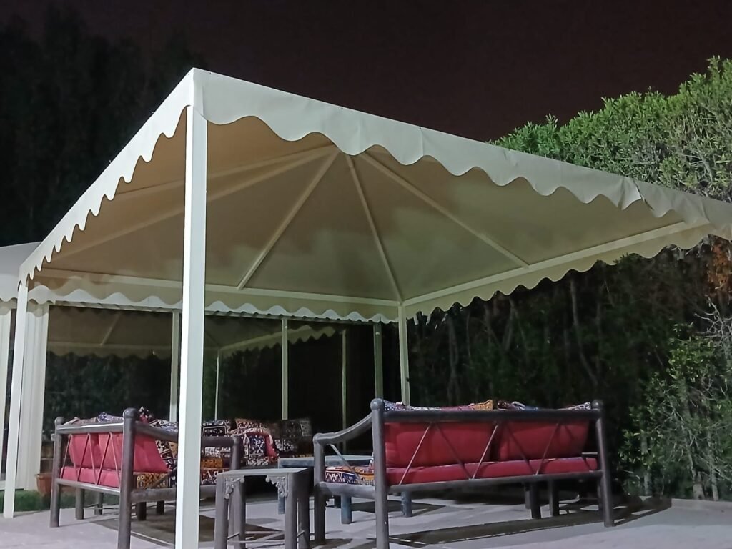 حلول مظلات للمداخل والأسطح والمسابح والفناء الخارجي، مصممة حسب المساحة والشكل المطلوب.