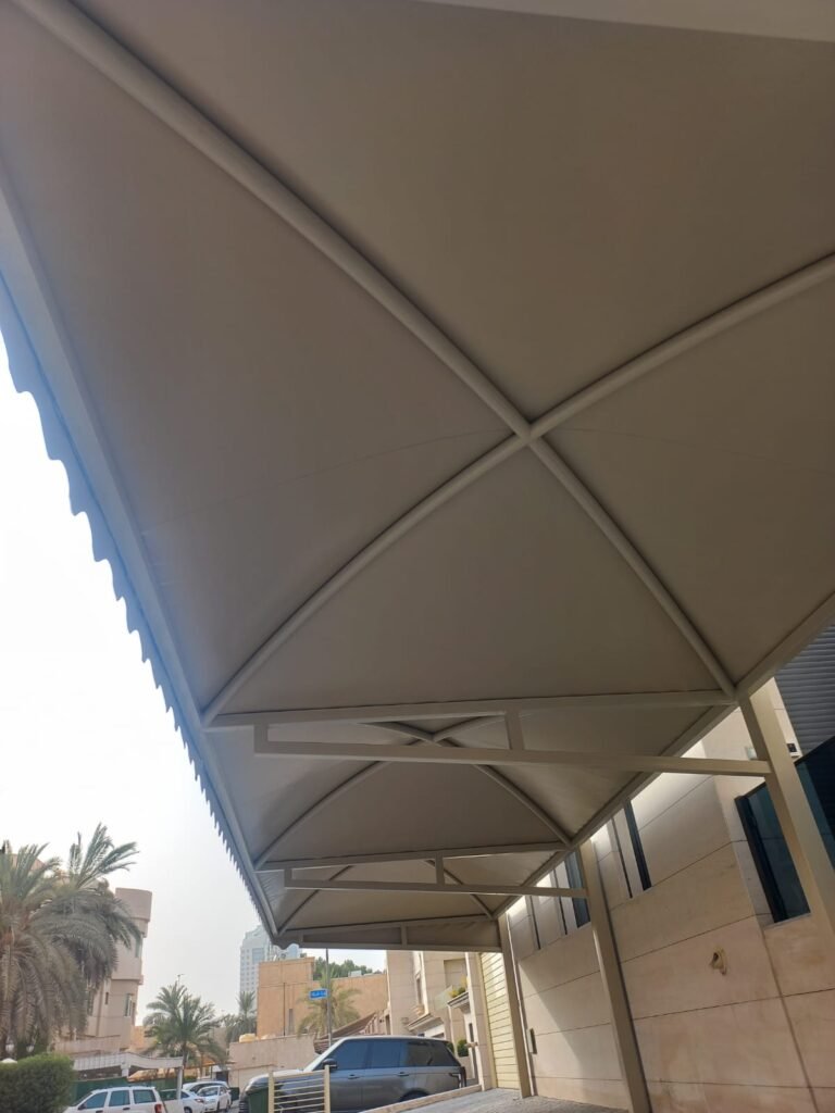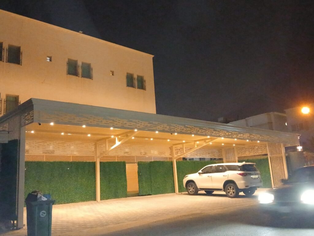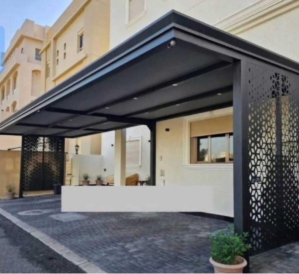 مظلات سيارات شينكو قوية ومقاومة للحرارة، تركيب احترافي للمنازل والمواقف بجودة عالية في جميع مناطق الكويت.