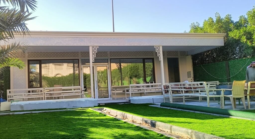 تنفيذ ديوانيات جاهزة ومخصصة للمنازل والحدائق بتصاميم حديثة وجودة عالية، مع عزل ممتاز وتشطيب احترافي في جميع مناطق الكويت.