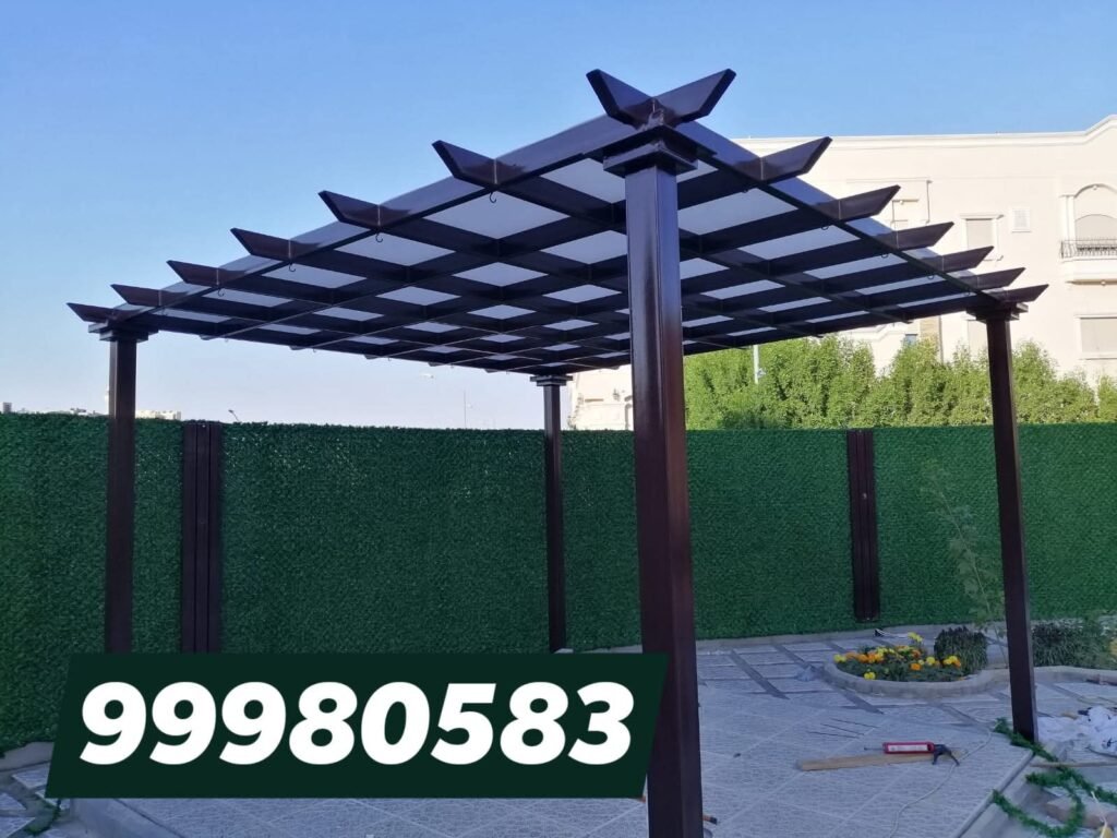 تركيب برجولات في الكويت للحدائق والمنازل، تصميم أنيق يوفر ظلًا ومساحة جلوس مريحة بجودة عالية.